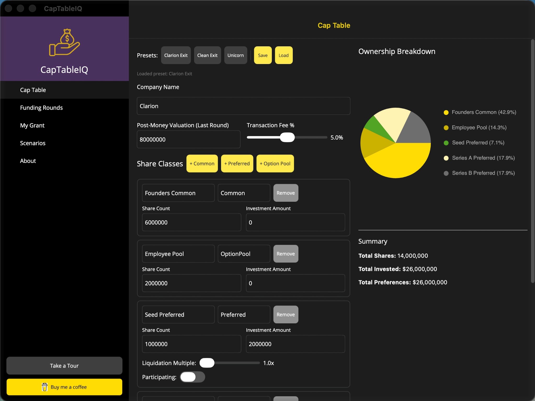 Model real-world exit scenarios, understand liquidation preferences, and see exactly who gets paid what. Built for founders, employees, and advisors who deserve transparency.